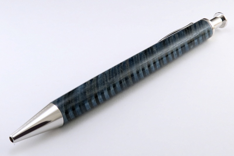 The Curly Maple barrels on this pen are dyed to simulate the colors of a sunrise. The dyes also make the curls in the wood pop.