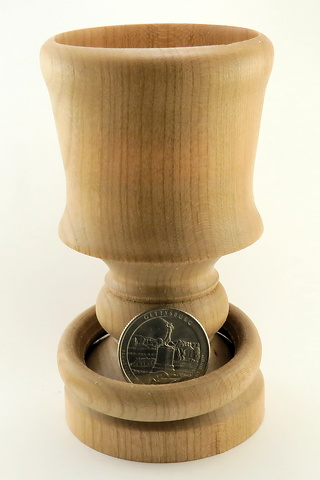 A nice piece of American Cherry was used for this goblet. The black, burned accent band at the rim provides a nice contrast to the red wood.